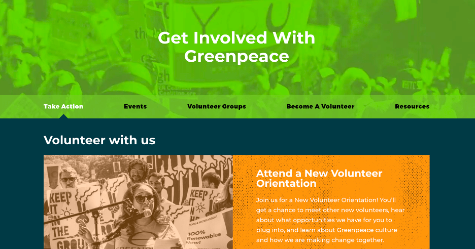 Their volunteer page is also laid out in a clear and user-friendly way, allowing you to get to where you want to be, whether that is learning about the organization, or signing up for one of their volunteer groups.